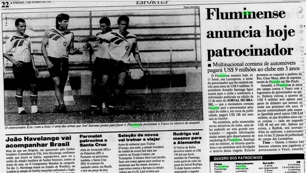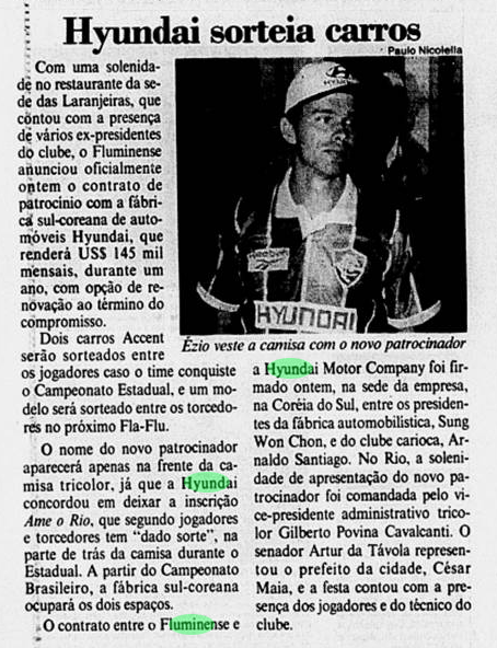 Patrocínio Hyundai, em versões tricolor e branca. Fontes: Gazeta Press, Jornal do Brasil, Rede Globo.