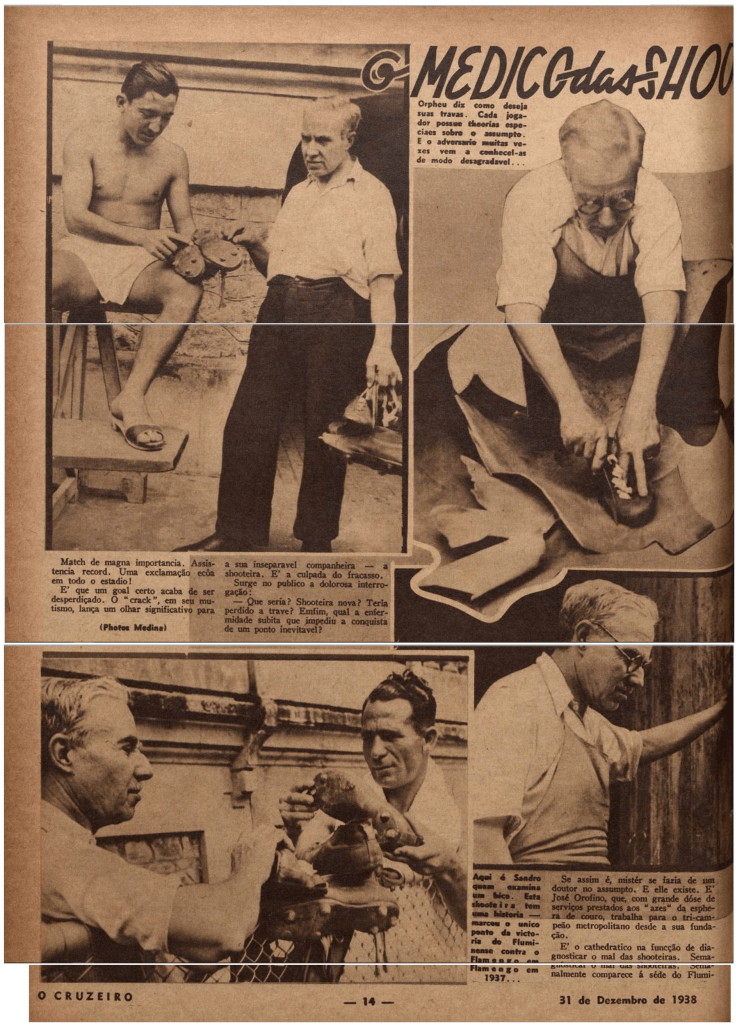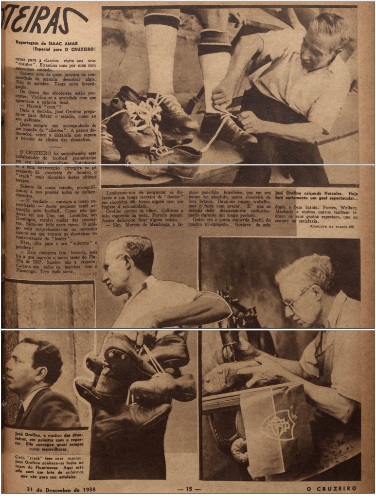 Reportagem de Isaac Amar sobre José Orofino, “O Médico das Shooteiras” nas laranjeiras. Revista O Cruzeiro, 31 de dezembro de 1938. Fontes: Revista O Cruzeiro, Futebol do Rio em Fotos.