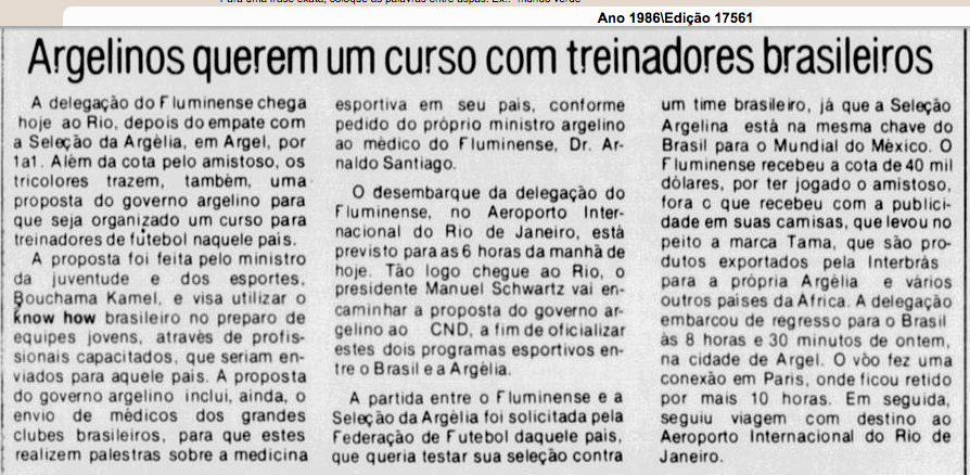 Patrocínio TAMA, segunda passagem em amistoso na Argélia, agora na camisa Penalty. Fontes: Youtube Futebol Raiz, Jornal do Brasil