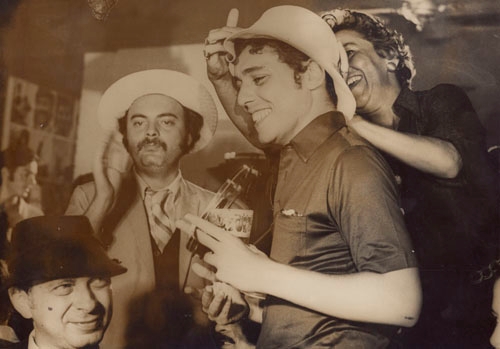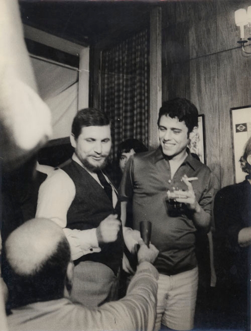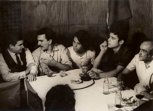 “Chico Buarque no Bar Antônio’s, após uma vitória do Fluminense. Estão presentes Roniquito Chevalier, o garçom Marcos Vasconcellos, Nelson Motta e Lucio Rangel.”